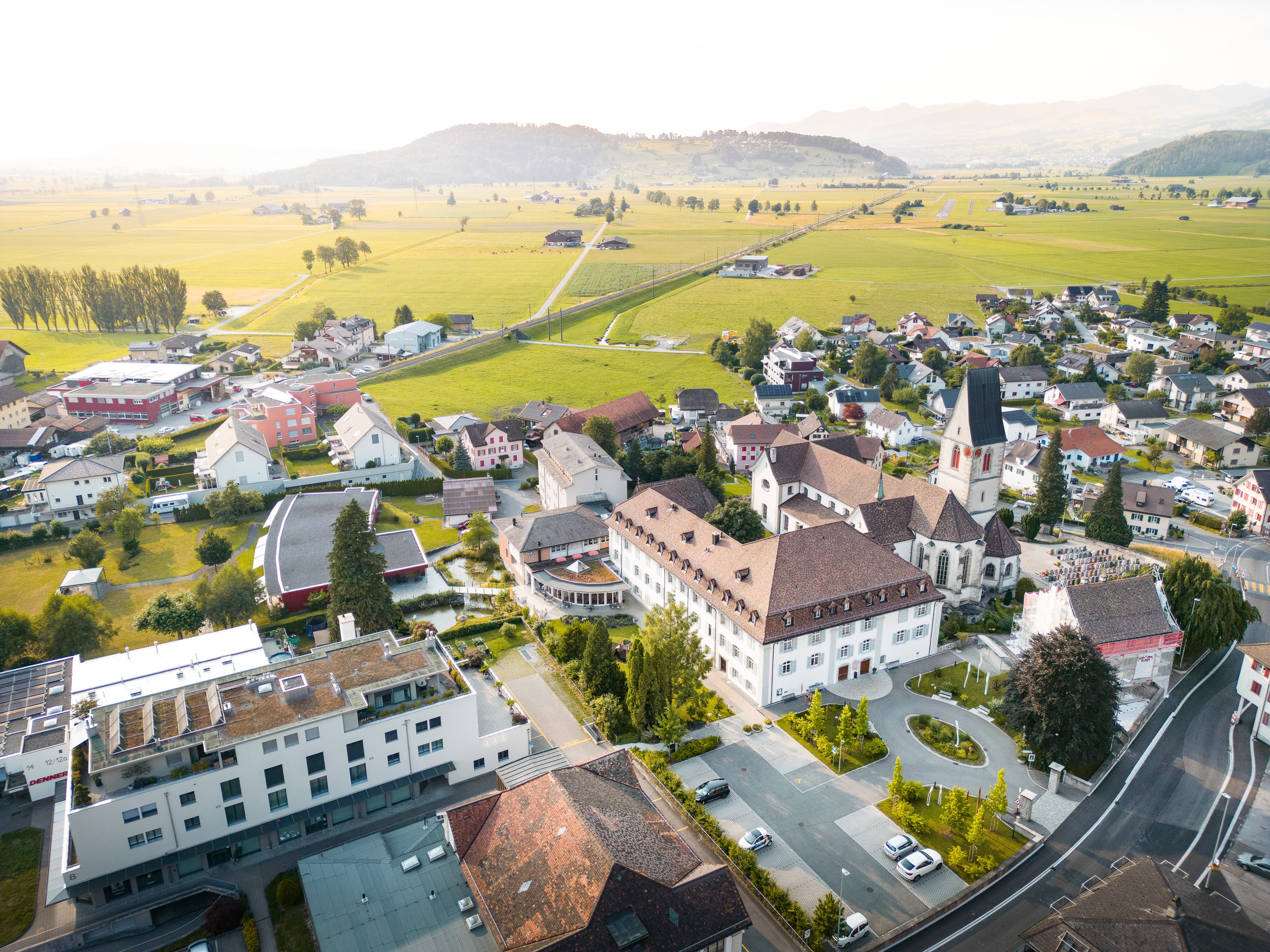 Das Kreuzstift ist im Herzen des ländlichen Dorfes Schänis gelegen. Der Bahnhof ist nur 3 Gehminuten entfernt und die Bushaltestellen grenzen direkt an das Kreuzstiftareal an. Auch Einkaufsmöglichkeiten, das Gemeindehaus und die Bank liegen in unmittelbarer Nähe. Trotz der zentralen Lage können direkt vom Kreuzstift aus schöne Spaziergänge im angrenzenden Riet unternommen werden.